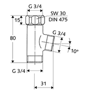 Wielkość: DN 20 G 3/4 IG x G 3/4 AG x G 3/4 AG