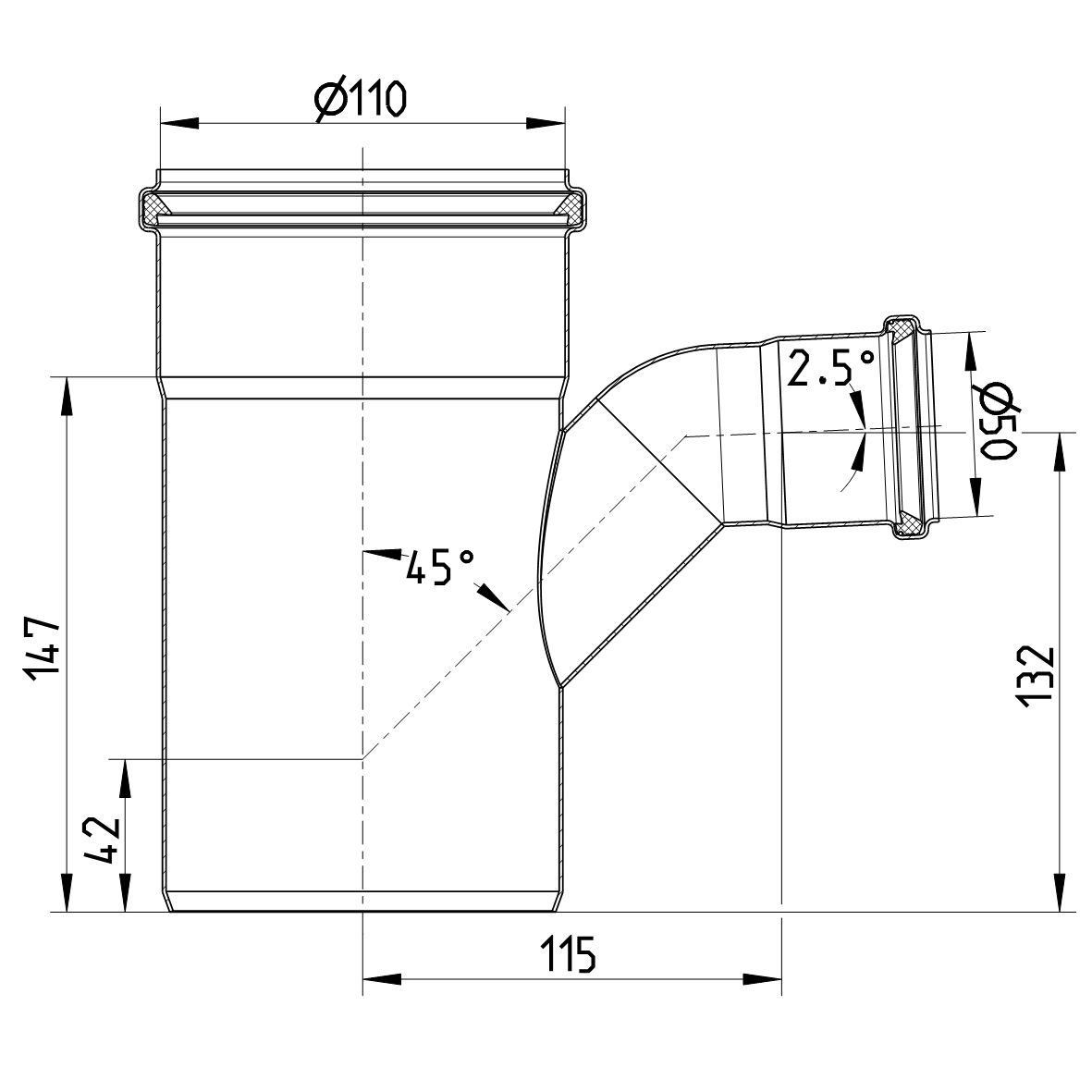 Trójnik 87.5 st. kombinacja "Y" DN =50x110 mm, stal kwasoodporna