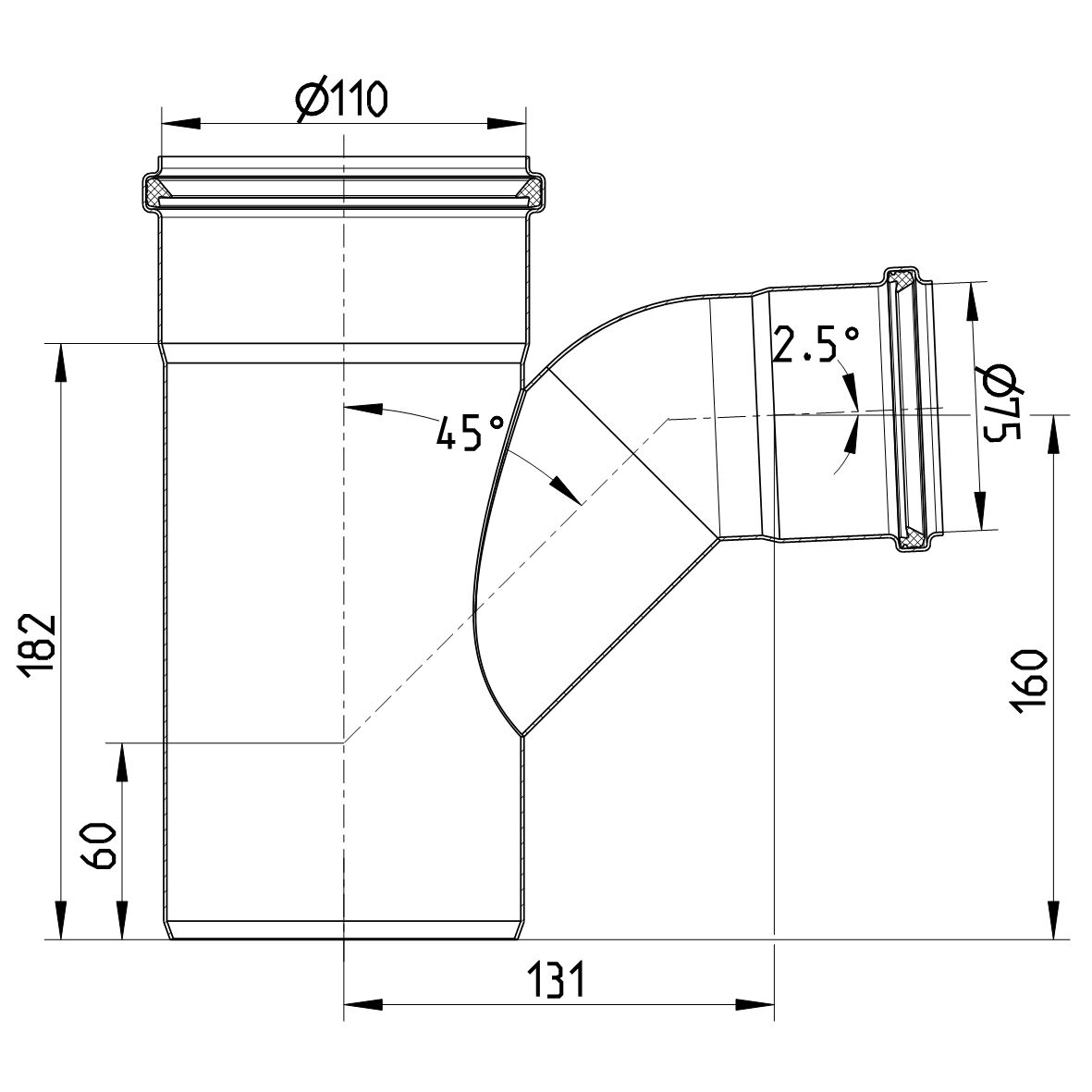 Trójnik 87.5 st. kombinacja "Y" DN =75x110 mm