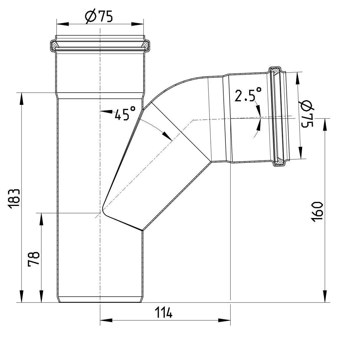 Trójnik 87.5 st. kombinacja "Y" DN =75x75 mm