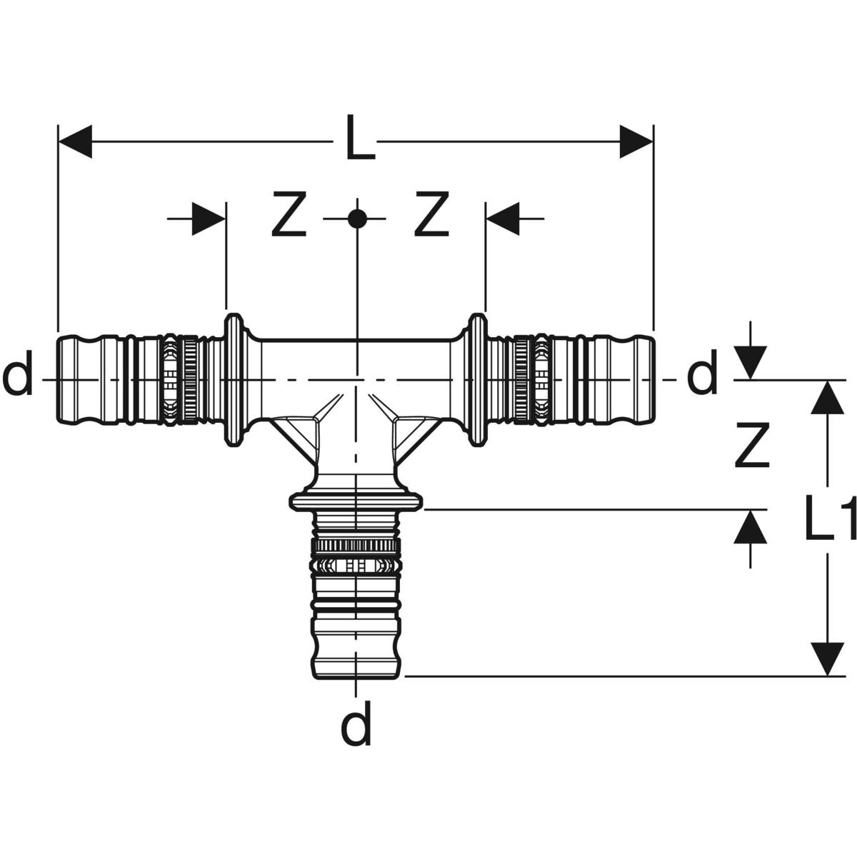 Trójnik GEBERIT Mepla 90' mosiądz 16 mm (końcówka wciskowa)