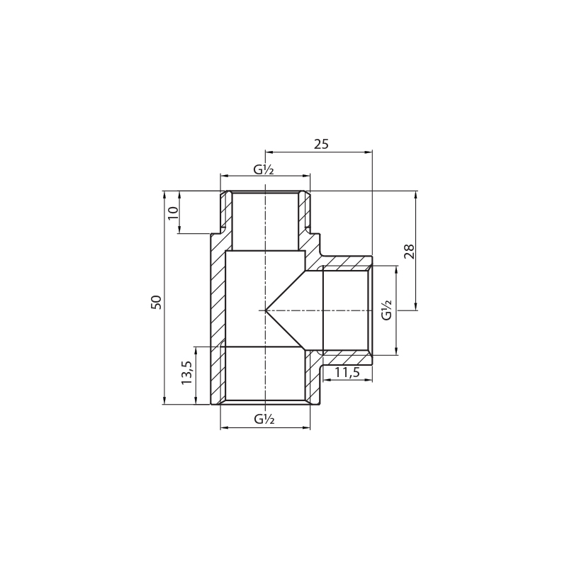 Trójnik PERFEXIM 453 mosiądz (chrom) 1/2'' (GZ x GW x GW), PN16 bar