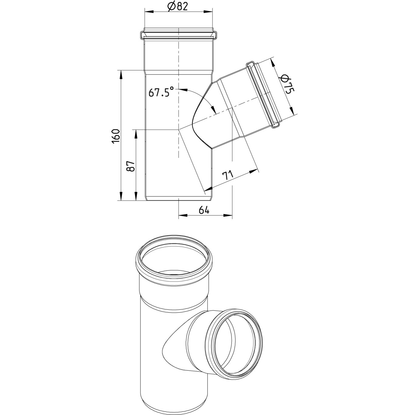 Trójnik redukcyjny 67.5 st., DN =82/75mm