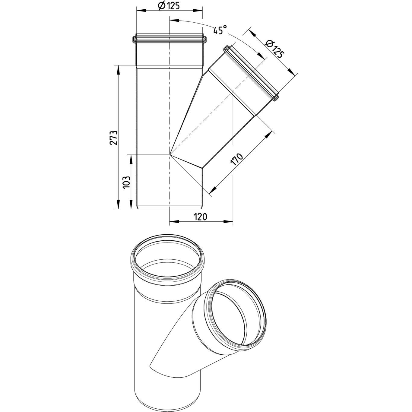 Trójnik skośny 45 st. DN =125x125 mm