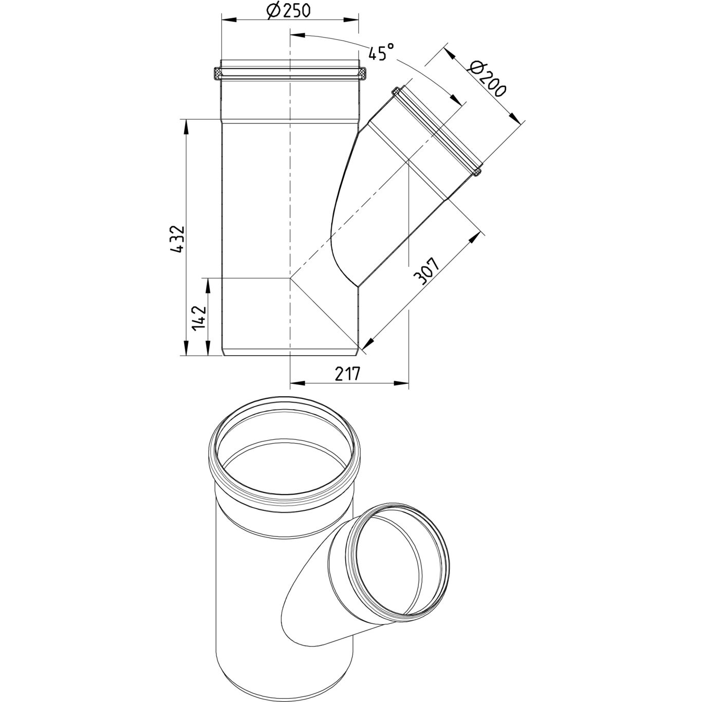 Trójnik skośny 45 st. DN =250x200 mm, stal kwasoodporna