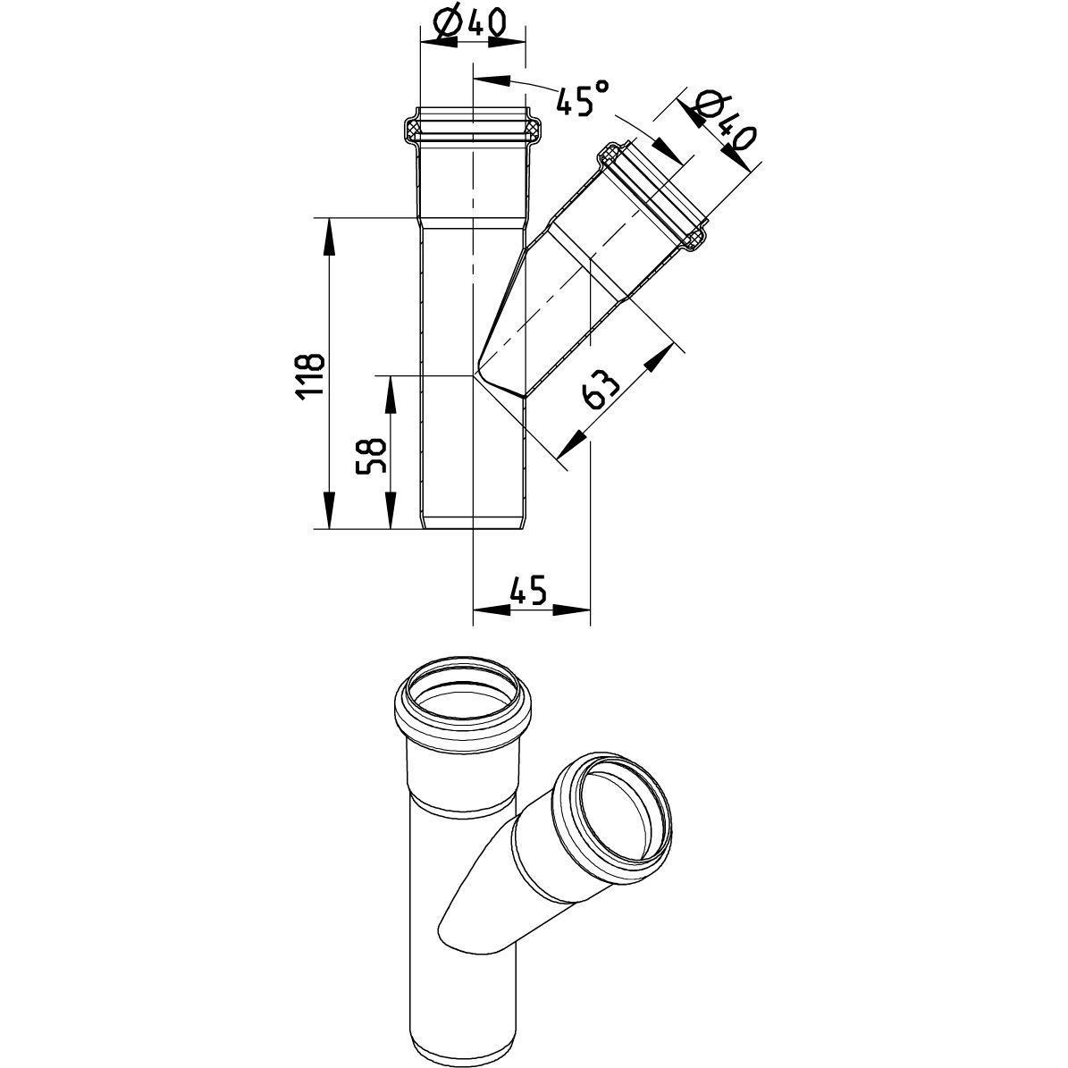 Trójnik skośny 45 st. DN =40x40mm, stal kwasoodporna
