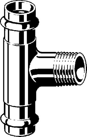 Sanpress-trójnik, z SC-Contur, brąz lub brąz krzemowy, przyłącza zaprasowywane, gwint R. Wyposażenie: Elementy uszczelniające EPDM, nr wzoru 2217.1, nr kat. 310 936, d1: 54 R: 1¼ d2: 54