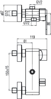TUBE Bateria natryskowa ścienna 2-funkcyjna z przyłączem górnym