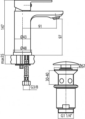 TUBE ECO Bateria umywalkowa stojaca ze spustem click clack , perlator z tworzywa