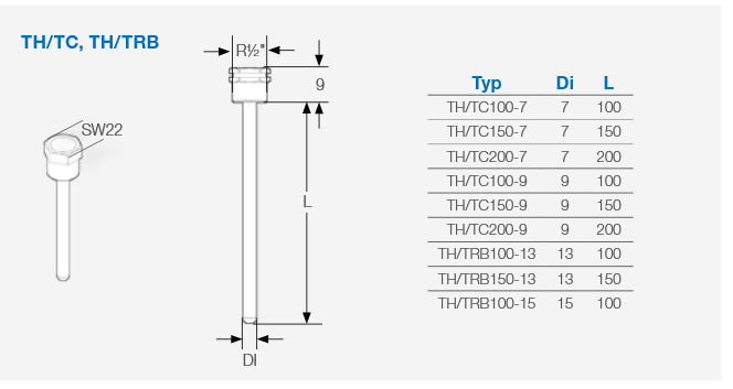 Niklowana tuleja zanurzeniowa do termostatów TC lub TRB, gwint zewnętrzny 1/2”, 0 - 120°C.