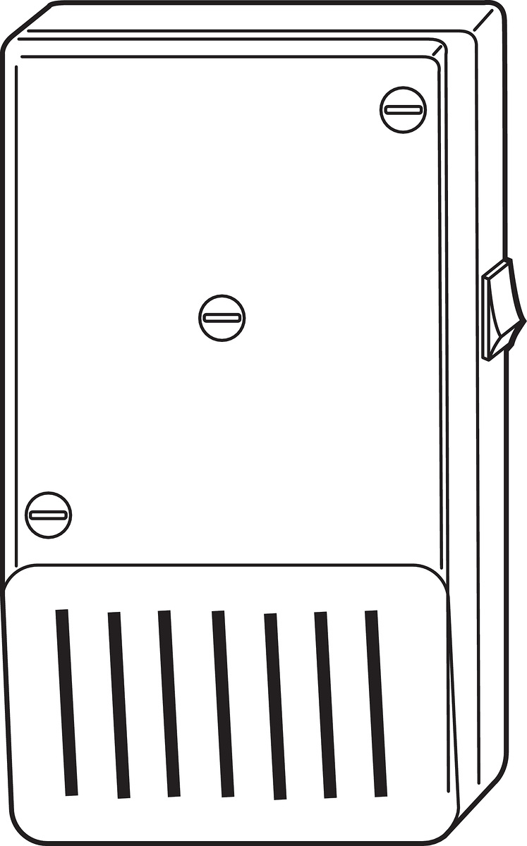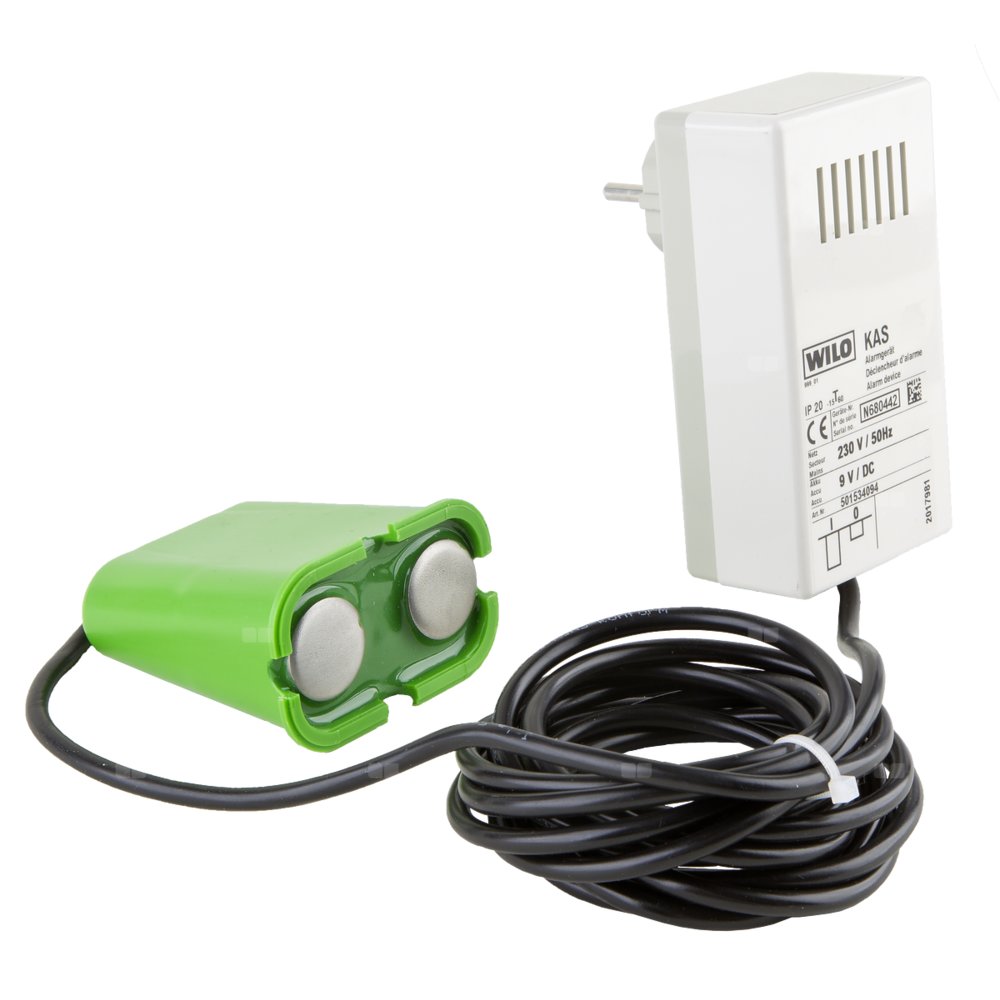 Niezależne od sieci małe urządzenie alarmowe w obudowie wtyczki ISO z wtyczką z uziemieniem, akustycznym sygnałem alarmowym (65 dBA) i zamontowaną elektrodą z kablem 3 m do rejestracji poziomu.
