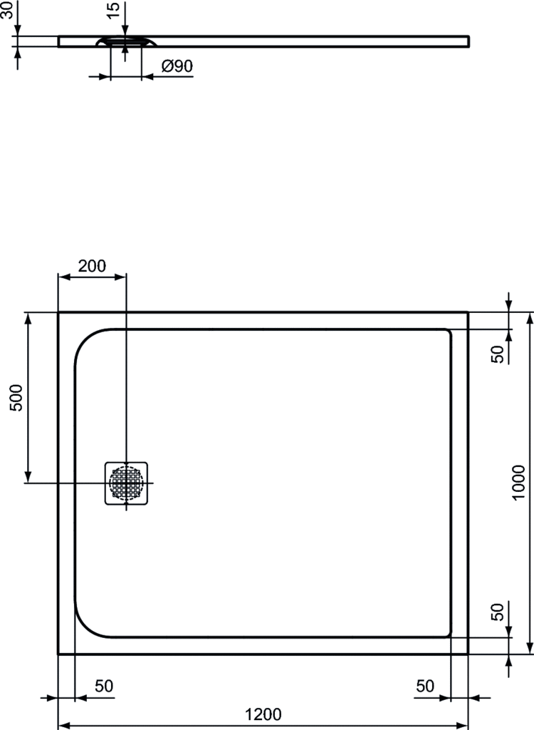 Brodzik grubości 30mm wykonany z materiału IDEAL SOLID. Klasa anty-poślizgowa C. Montaż na podłodze lub nad podłogą (do skompletowania z nogami do brodzika). Pokrywa odpływu ze stali nierdzewnej. Zalecane dodatkowe elementy: Syfon do brodzika - bez pokrywy (K936367). Uniwersalny zestaw nóg do brodzika (dla rozmiaru 1000 mm i większych - konieczne są 2 szt. K936467) (K936467).