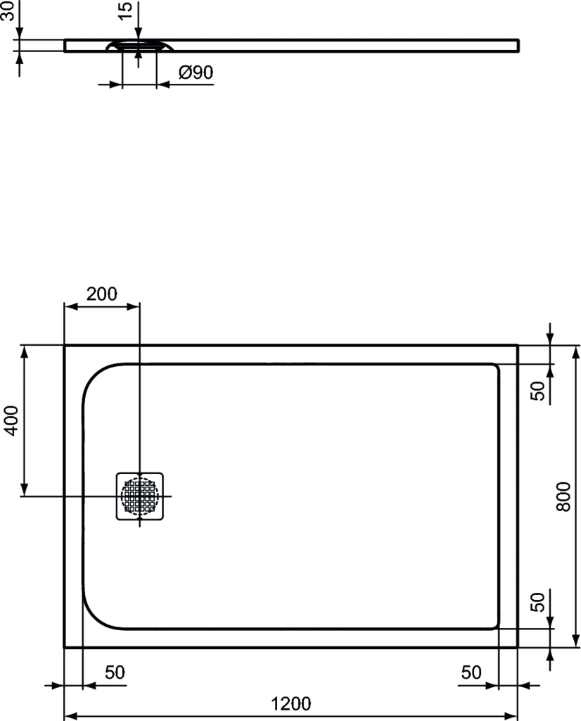 Brodzik grubości 30mm wykonany z materiału IDEAL SOLID. Klasa anty-poślizgowa C. Montaż na podłodze lub nad podłogą (do skompletowania z nogami do brodzika). Pokrywa odpływu ze stali nierdzewnej. Zalecane dodatkowe elementy: Syfon do brodzika - bez pokrywy (K936367). Uniwersalny zestaw nóg do brodzika (dla rozmiaru 1000 mm i większych - konieczne są 2 szt. K936467) (K936467).