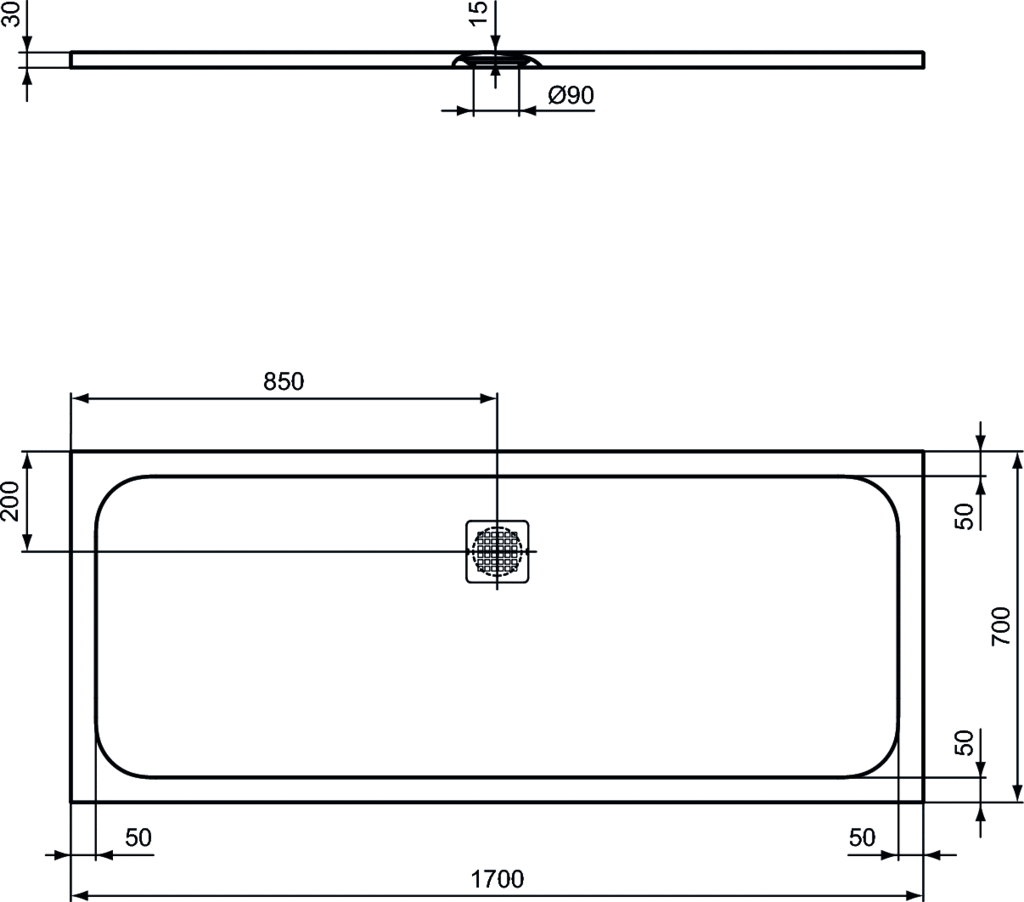 Brodzik grubości 30mm wykonany z materiału IDEAL SOLID. Klasa anty-poślizgowa C. Montaż na podłodze lub nad podłogą (do skompletowania z nogami do brodzika). Pokrywa odpływu ze stali nierdzewnej. Zalecane dodatkowe elementy: Syfon do brodzika - bez pokrywy (K936367). Uniwersalny zestaw nóg do brodzika (dla rozmiaru 1000 mm i większych - konieczne są 2 szt. K936467) (K936467).