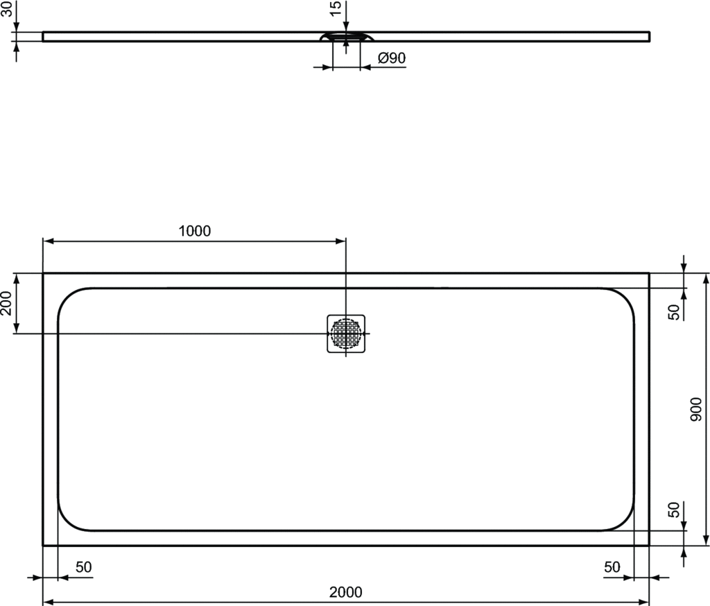 Brodzik grubości 30mm wykonany z materiału IDEAL SOLID. Klasa anty-poślizgowa C. Montaż na podłodze lub nad podłogą (do skompletowania z nogami do brodzika). Pokrywa odpływu ze stali nierdzewnej. Zalecane dodatkowe elementy: Syfon do brodzika - bez pokrywy (K936367). Uniwersalny zestaw nóg do brodzika (dla rozmiaru 1000 mm i większych - konieczne są 2 szt. K936467) (K936467).