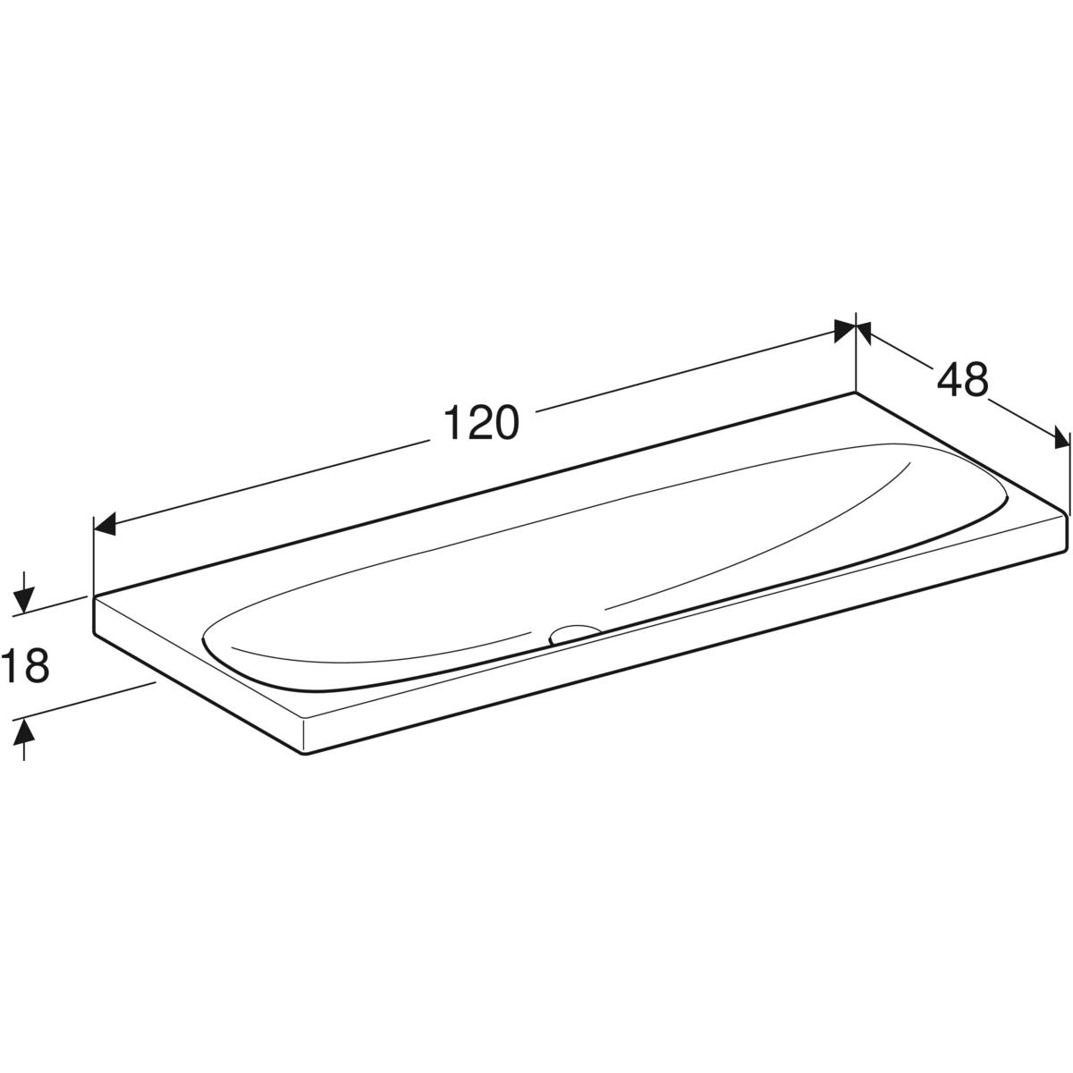 Umywalka GEBERIT Acanto 2-stanowiskowa prostokątna, biała / KeraTect, 1200mm, bez otworu na baterię, bez odpływu przelewowego, półka od ściany