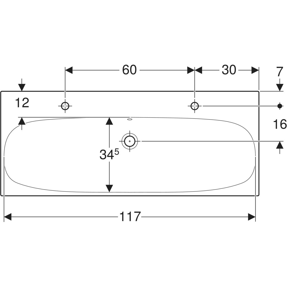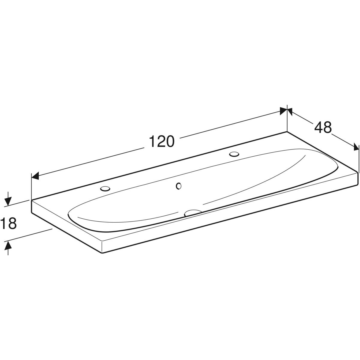 Umywalka GEBERIT Acanto 2-stanowiskowa prostokątna, biała / KeraTect, 1200mm, otwór na baterię na środku, z odpływem przelewowym, półka od ściany