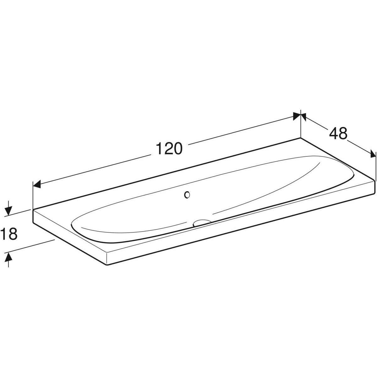 Umywalka GEBERIT Acanto prostokątna, biała, 1200mm, bez otworu na baterię, z odpływem przelewowym, półka od ściany