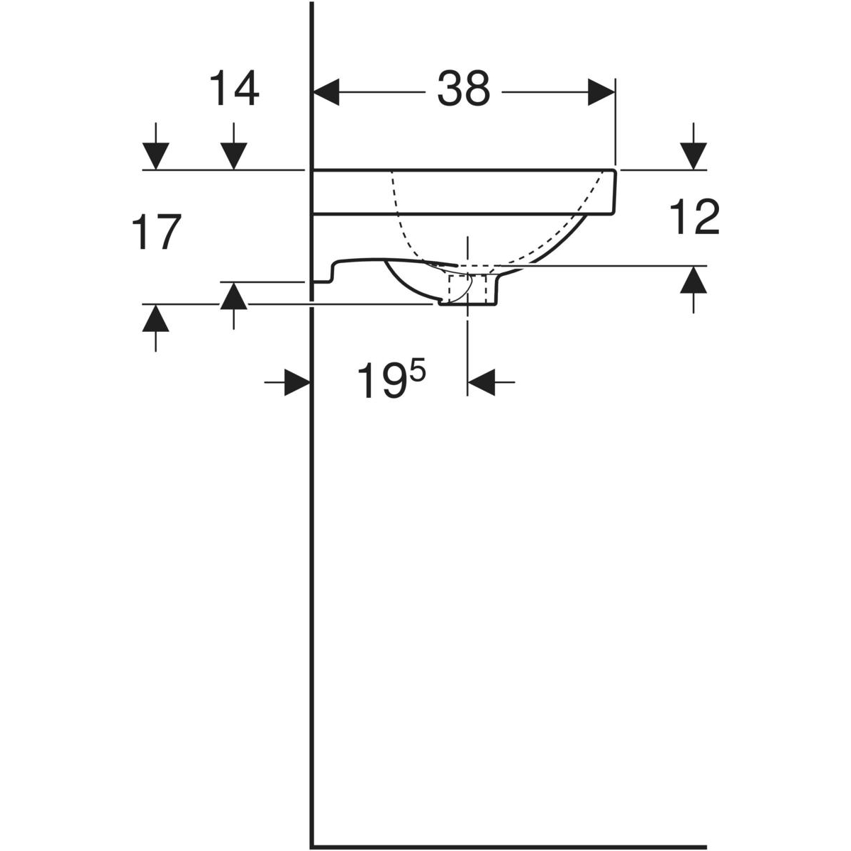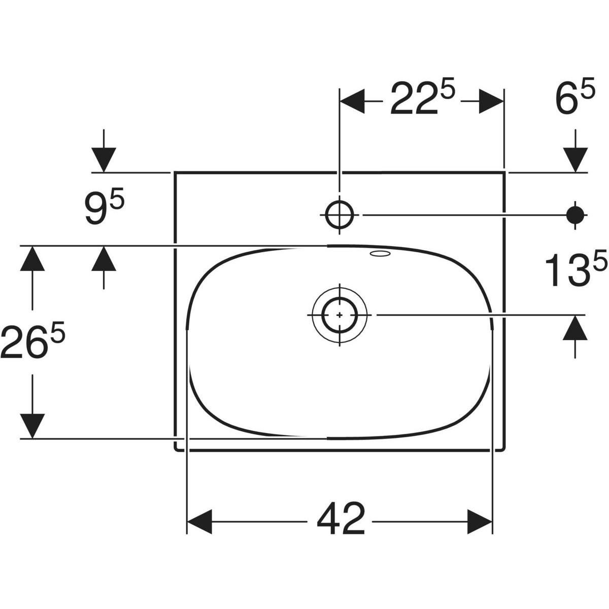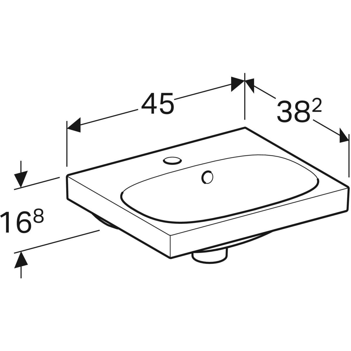 Umywalka GEBERIT Acanto prostokątna, biała / KeraTect, 450mm, otwór na baterię na środku, z odpływem przelewowym, półka od ściany