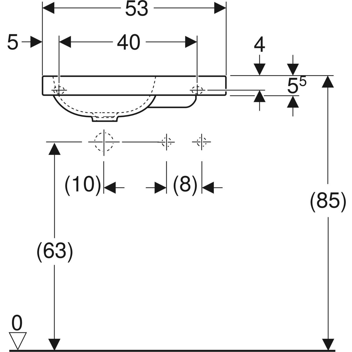 Umywalka GEBERIT iCon Light prostokątna, biała, 530mm, otwór na baterię z prawej, bez odpływu przelewowego, półka z prawej