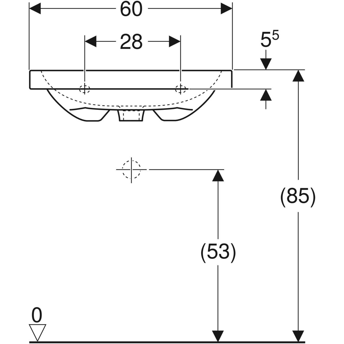 Umywalka GEBERIT iCon Light prostokątna, biała, 600mm, bez otworu na baterię, z odpływem przelewowym, półka od ściany