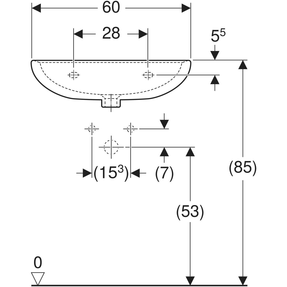 Umywalka Koło Rekord: 60x45.5cm, Otwór na baterię=Bez, Przelew=Widoczny, Biały