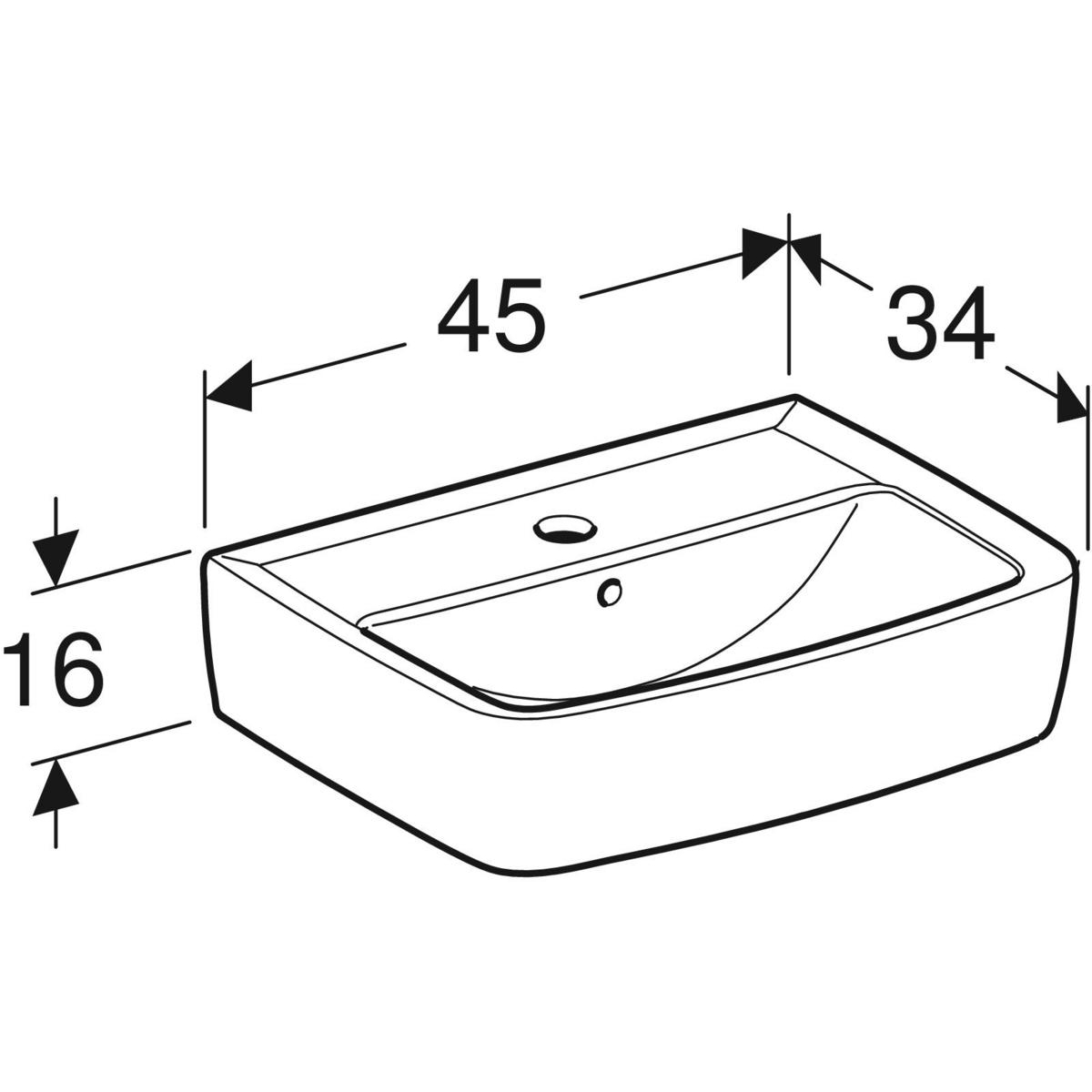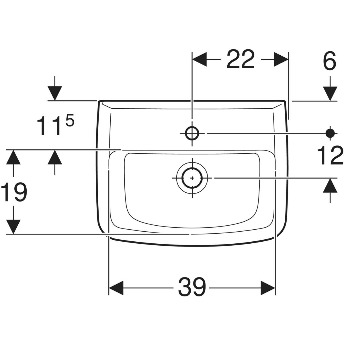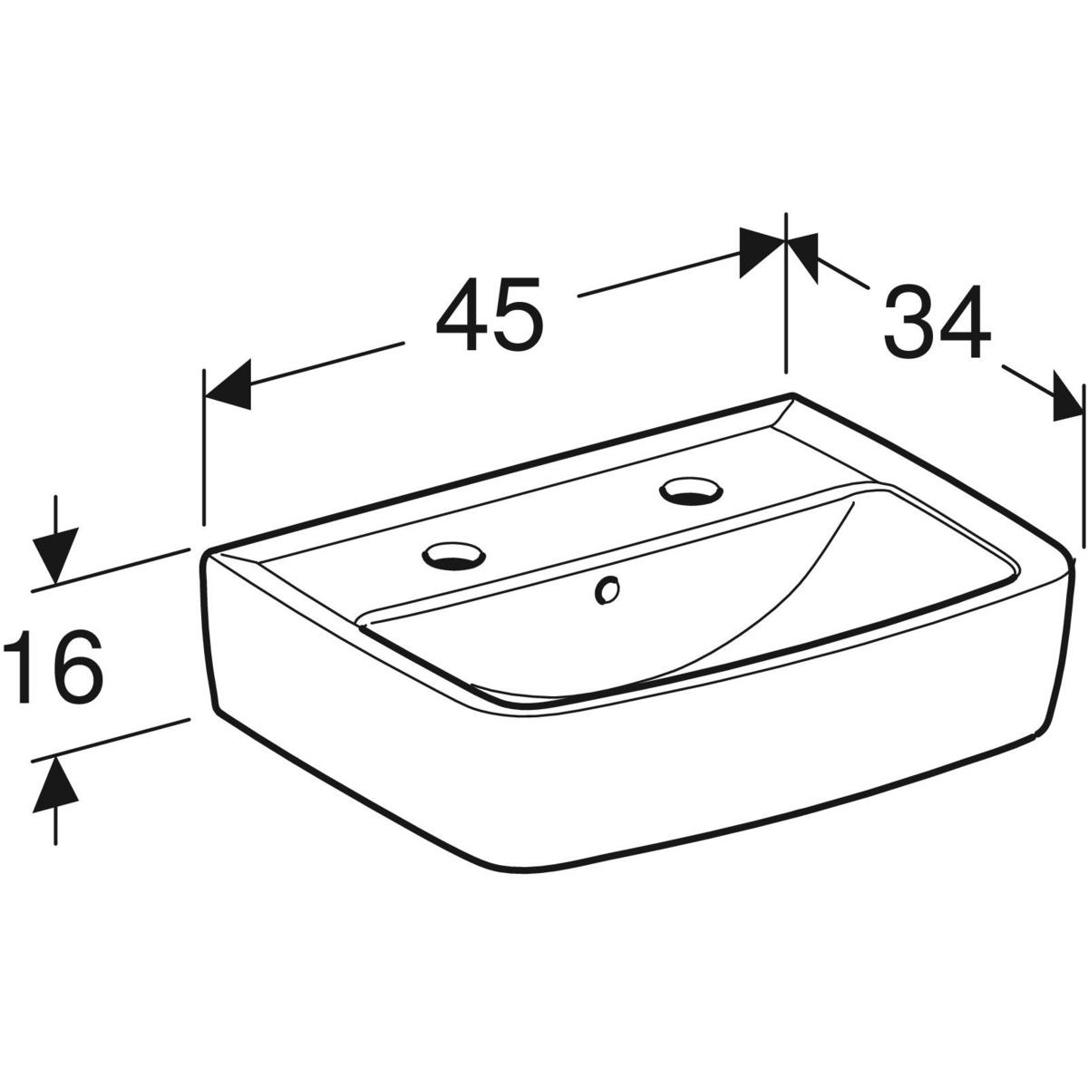Umywalka mała Koło Rekord, kształt geometryczny: 45x34cm, Otwór na baterię=Na środku, Przelew=Widoczny, Biały