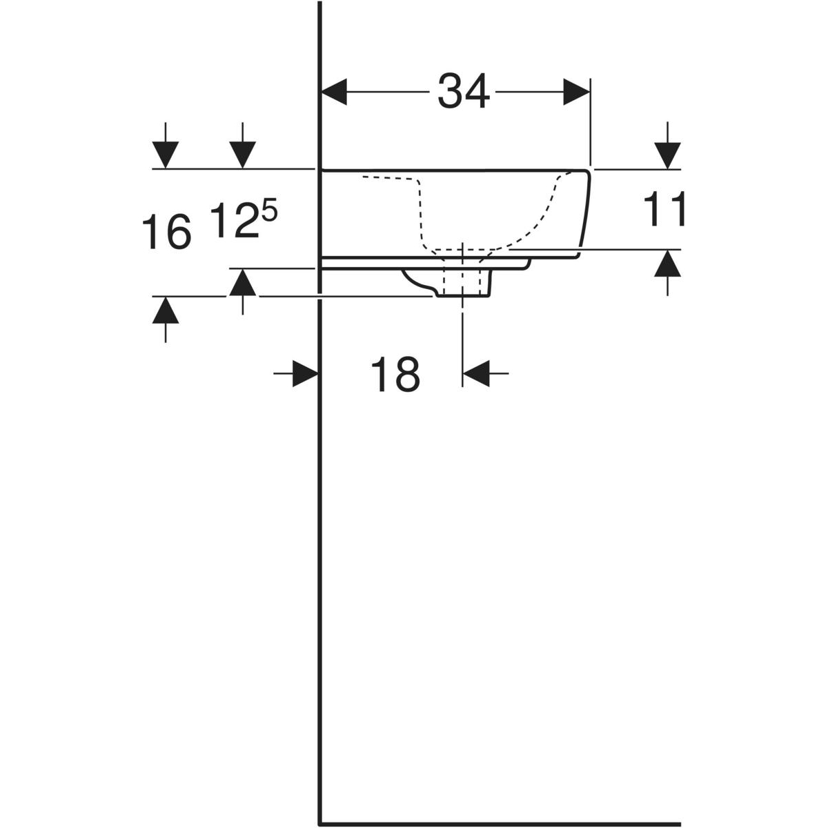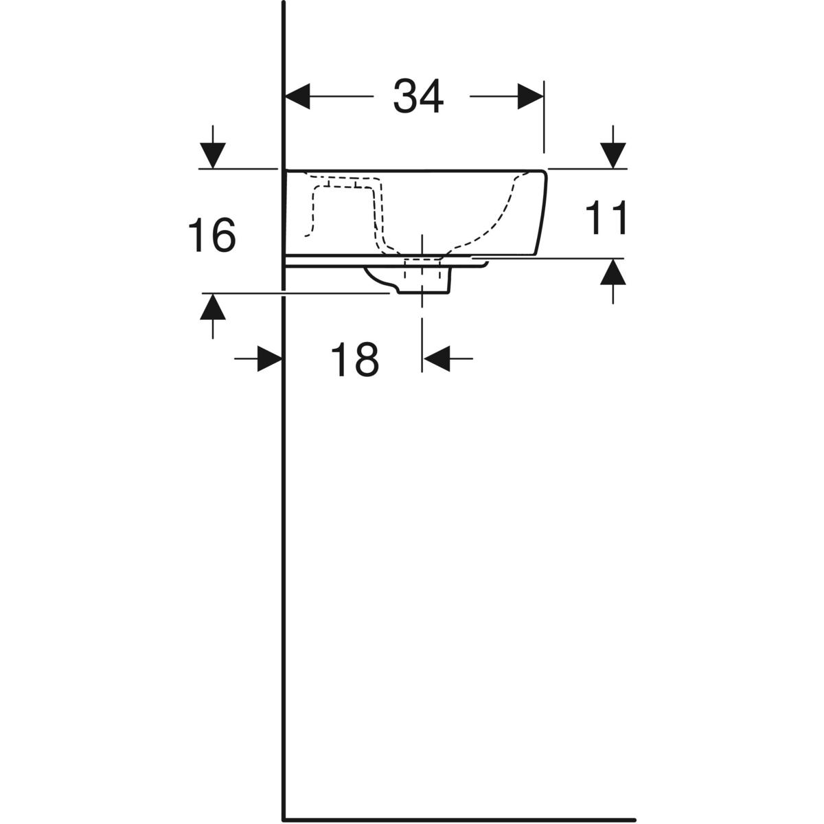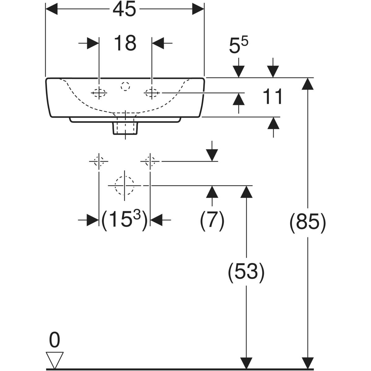 Umywalka mała Koło Rekord, kształt geometryczny: 45x34cm, Otwór na baterię=Na środku, Przelew=Widoczny, Biały