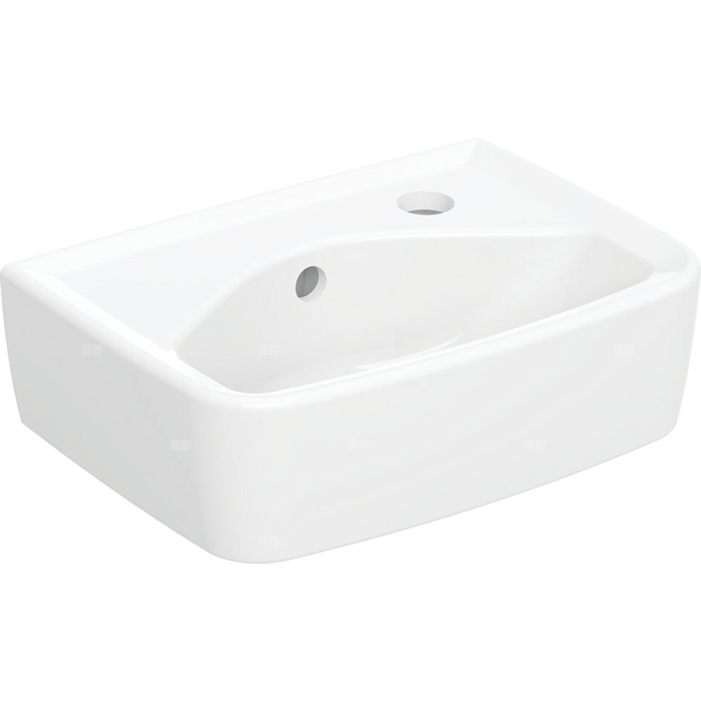 Umywalka mała Koło Rekord, kształt geometryczny, krótka: 35x25cm, Otwór na baterię=Prawa strona, Przelew=Widoczny, Biały