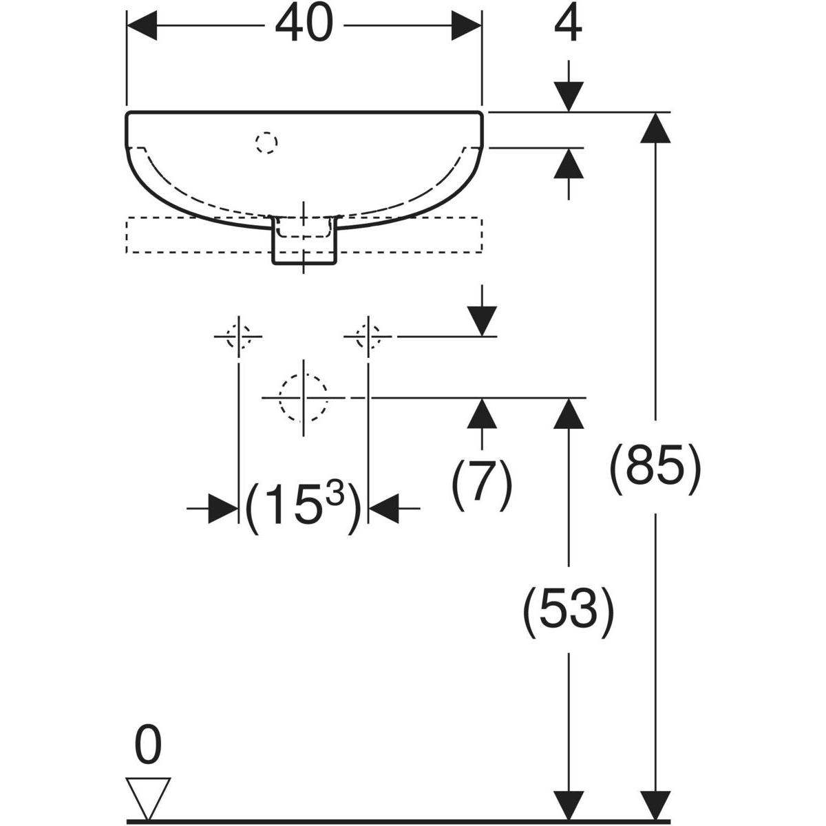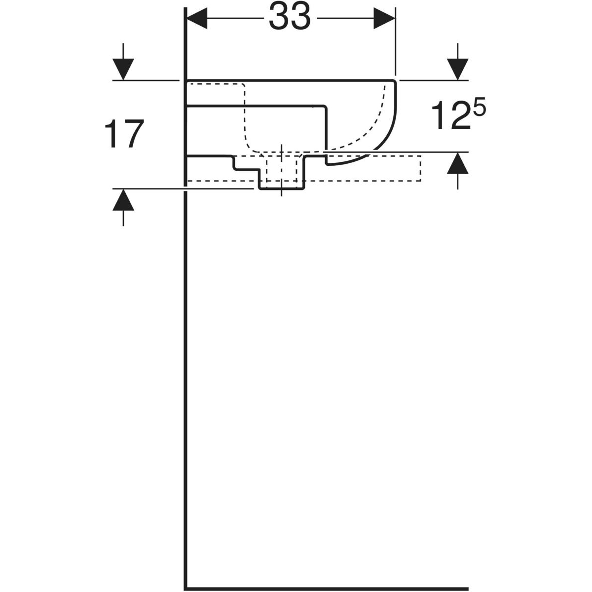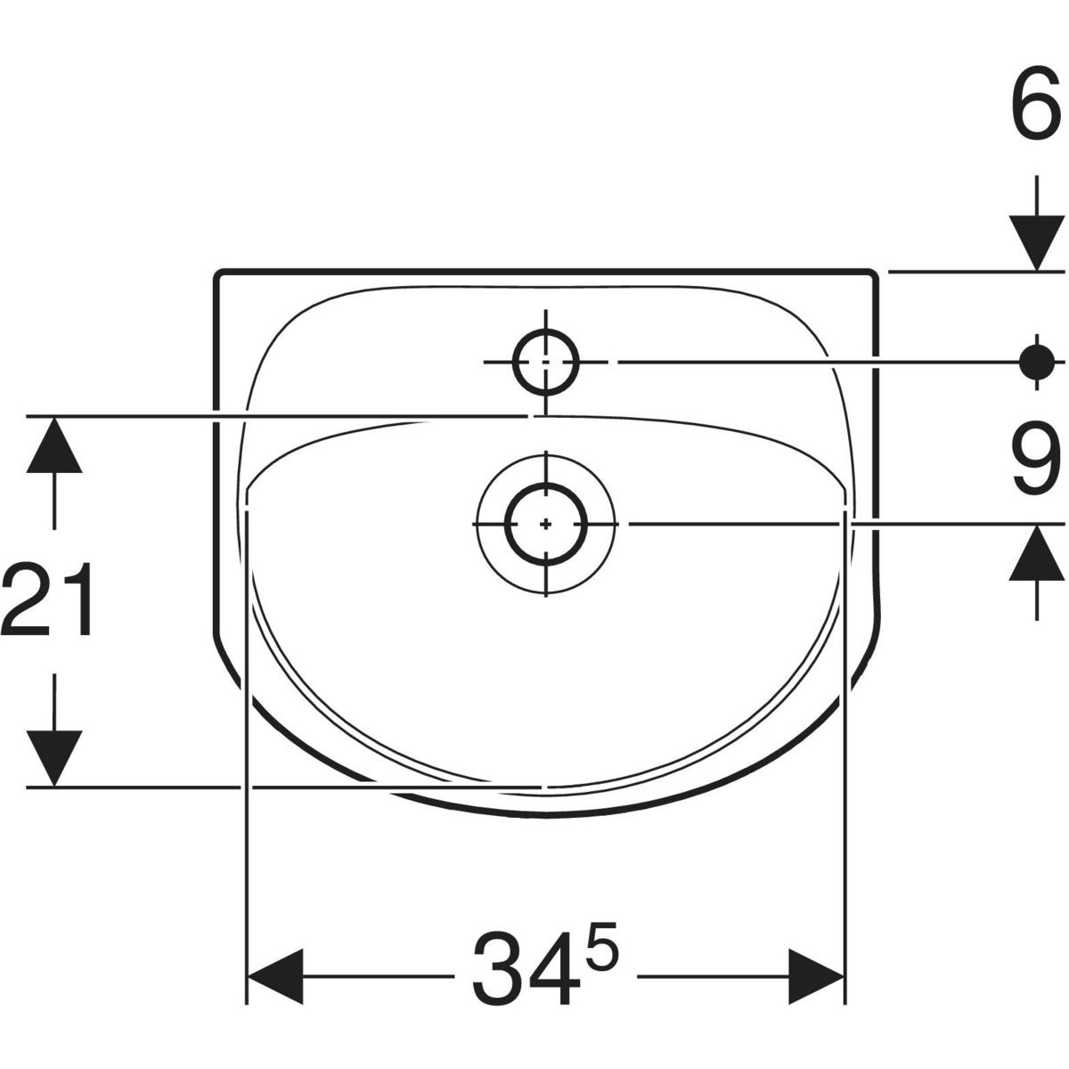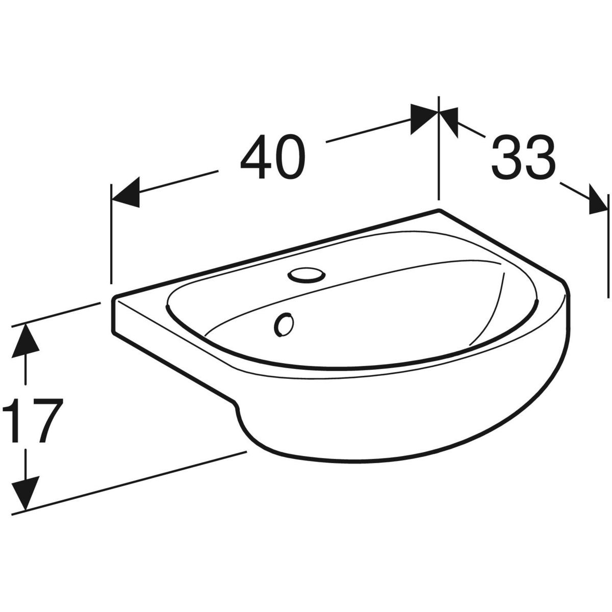 Umywalka mała Koło Solo, B40cm, H17cm, T33cm, z otworem na baterię, z przelewem