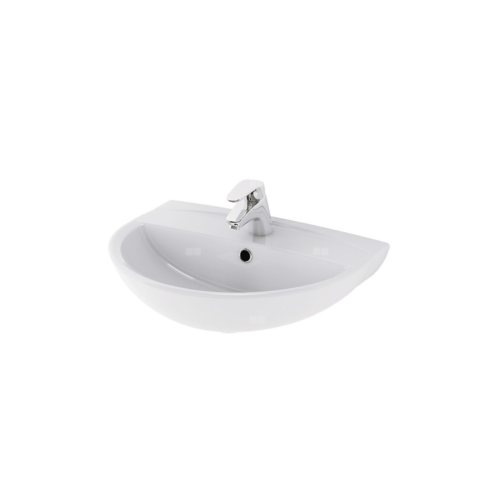 Umywalka ceramiczna z centralnie umieszczonym otworem na armaturę, do montażu na ścianie