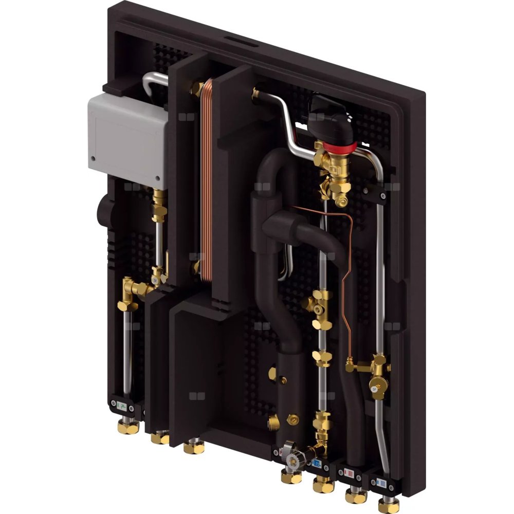 - stacja mieszkaniowa prefabrykowana i poddana próbie ciśnieniowej- jednostka pokryta izolacją w celu uniknięcia strat ciepła- dane dotyczące warunków eksploatacji i stosowania zostały przedstawione w kartach technicznych- izolacja termiczna rur obiegu zasilania CO- wtórny zestaw mieszający z pompą wtórną do ogrzewania podłogowego i zaworem silnikowym do sterowania zasilaniem grzewczym połączony z Uponor Smatrix Move- regulacja przepływu z kompensacją pogodową za pomocą zaworu silnikowego i programu tygodniowego z dziewięcioma zaprogramowanymi harmonogramami, pompa spójna z kontrolerem Uponor Smatrix Base lub Wave- czujnik przepływu zasilania- czujnik temperatury zewnętrznej- ogranicznik uderzenia hydraulicznego- regulator różnicy ciśnień w obiegu pierwotnym- syfon termiczny poprawia higieniczność, ogranicza przegrzew wymiennika w stanie czuwania- zawór strefowy na wtórnym obiegu ogrzewania- wyjście zimnej wody z dystansem montażowym wodomierza 110 mm x3/4"- filtr obiegu pierwotnego zasilania i powrotu ogrzewania- możliwość podłączenia uziemienia elektrycznego- maks. ciśnienie robocze na ogrzewaniu : PN10- maks. ciśnienie robocze na wodzie pitnej: PN10- maks. tempertaura pracy: 5 - 85 °C- maks. różnica ciśnień na ogrzewaniu: 2,5 bar- min. ciśnienie na wodzie pitnej: 2,0 bar- materiały złączek na wodzie pitnej: CW617N- materiały złączek na ogrzewaniu: CW617N, CW614N- materiał rur: stal nierdzewna 1.4401- stacja mieszkaniowa gotowa do montażu ściennego- wymiary: szerokość/wysokość/głębokość W/H/D 390 x 578 x 280 mm- pobór mocy elektrycznej: max 3W