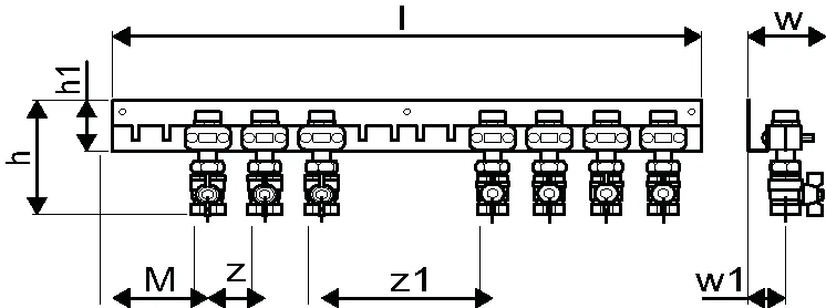 Uponor Combi Port E-Pro szyna z zaworami bottom x7,DN20,MT/FT
