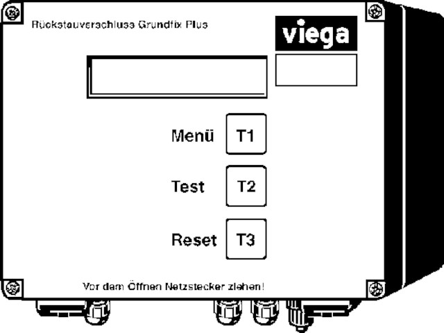 Grundfix Plus Control-urządzenie sterujące i sygnalizujące. Zastosowanie jako część zamienna: Grundfix Plus Control-zasuwa zwrotna Typ 3 nr wzoru 4987.41. Wyposażenie: Element obsługowy z trzema przyciskami i wyświetlaczem tekstowym LCD, test automatyczny co 24 h, zasilanie awaryjne dzięki dodatkowej baterii, optyczny/akustyczny sygnał ostrzegawczy, nr wzoru 4987.42, nr kat. 667 832, napięcie (V): 230/12 V,