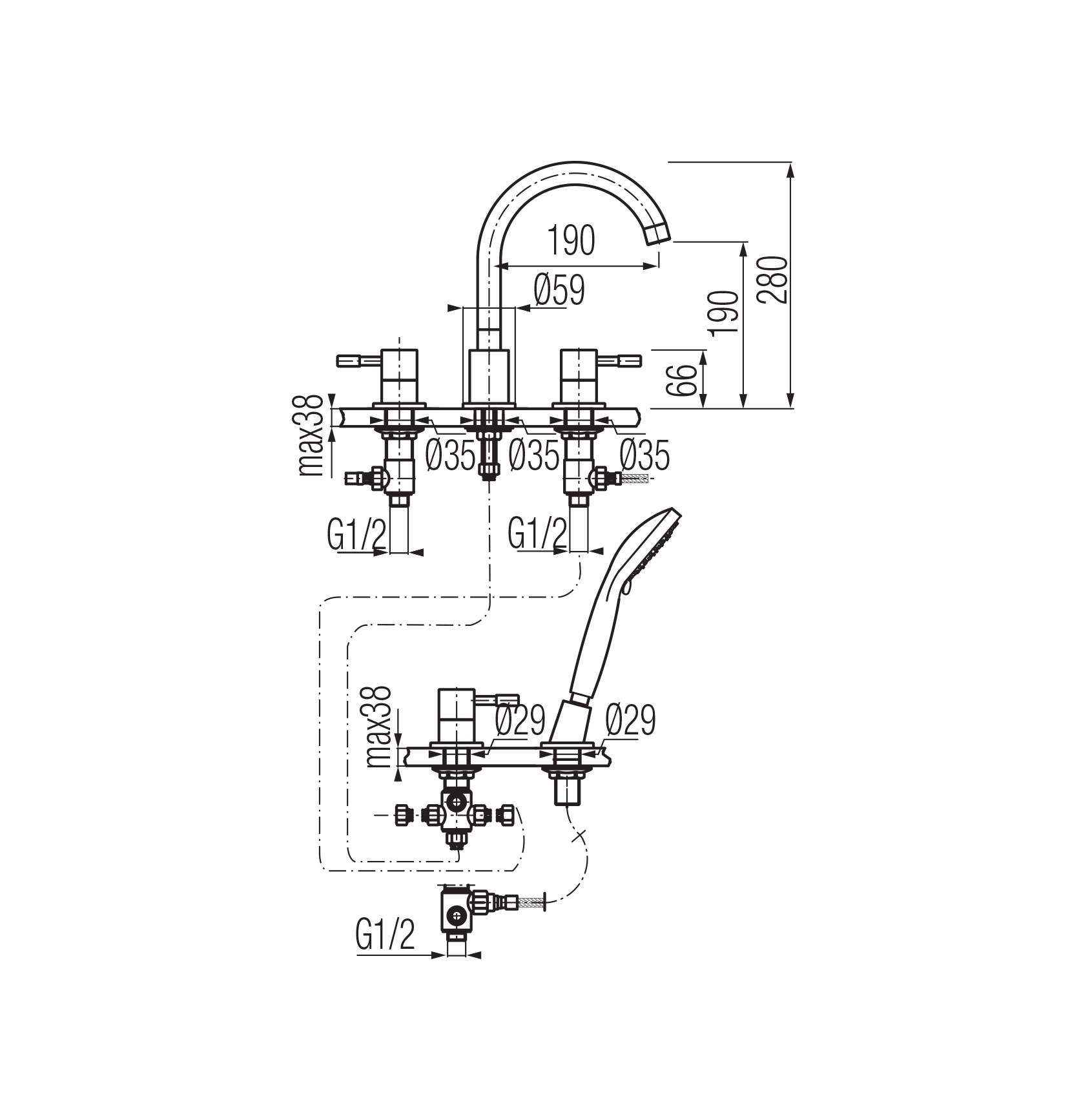 VEGANE Bateria wannowa 5-otworowa stojąca