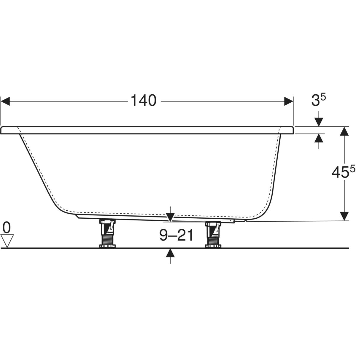 Wanna prostokątna Geberit Perfect, z nogami: 140x70cm