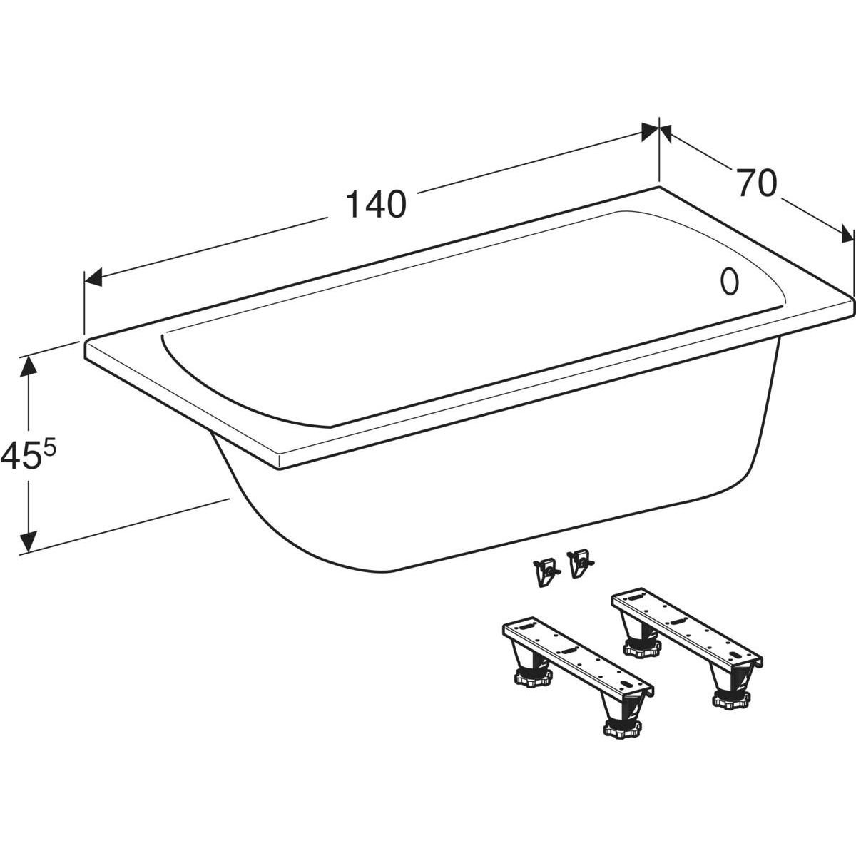 Prostokątny Odpływ z boku Otwór odpływowy ø 52 mm Do montażu w połączeniu z nogami montażowymi lub wspornikami wanny Materiał: Akryl sanitarny Kolor główny: Biały Powierzchnia: Błyszczący Zawartość: Zestaw nóg Wanna
