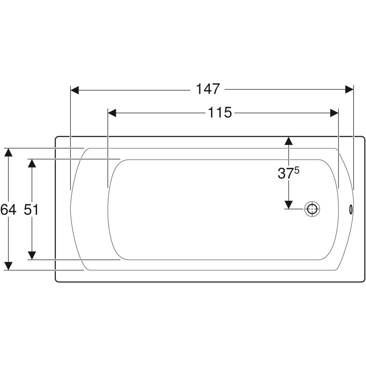 Prostokątny Odpływ z boku Otwór odpływowy ø 52 mm Do montażu w połączeniu z nogami montażowymi lub wspornikami wanny Materiał: Akryl sanitarny Kolor główny: Biały Powierzchnia: Błyszczący Zawartość: Zestaw nóg Wanna