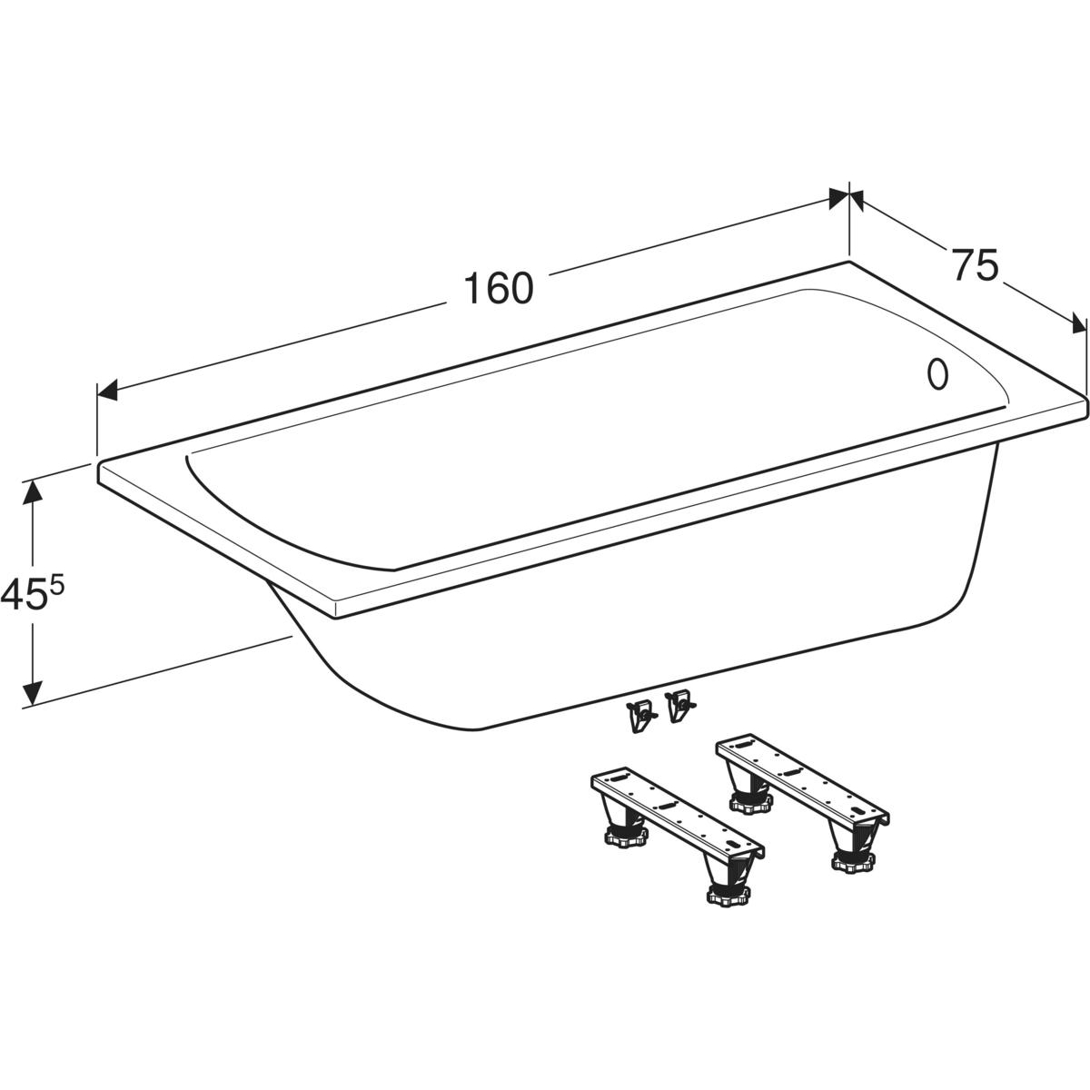 Wanna prostokątna Geberit Perfect, z nogami: 160x75cm