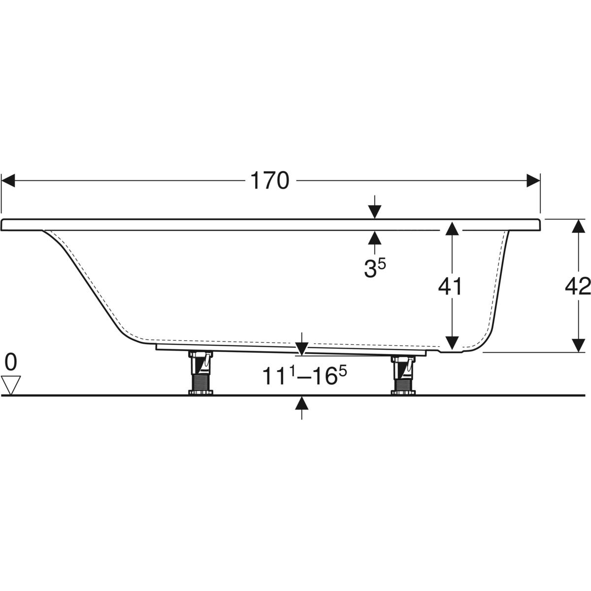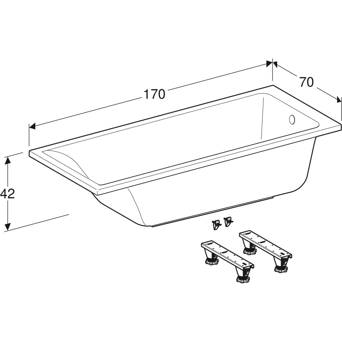 Wanna prostokątna Geberit Selnova Square, z nogami: 170x70cm, Całkowita pojemność=193l