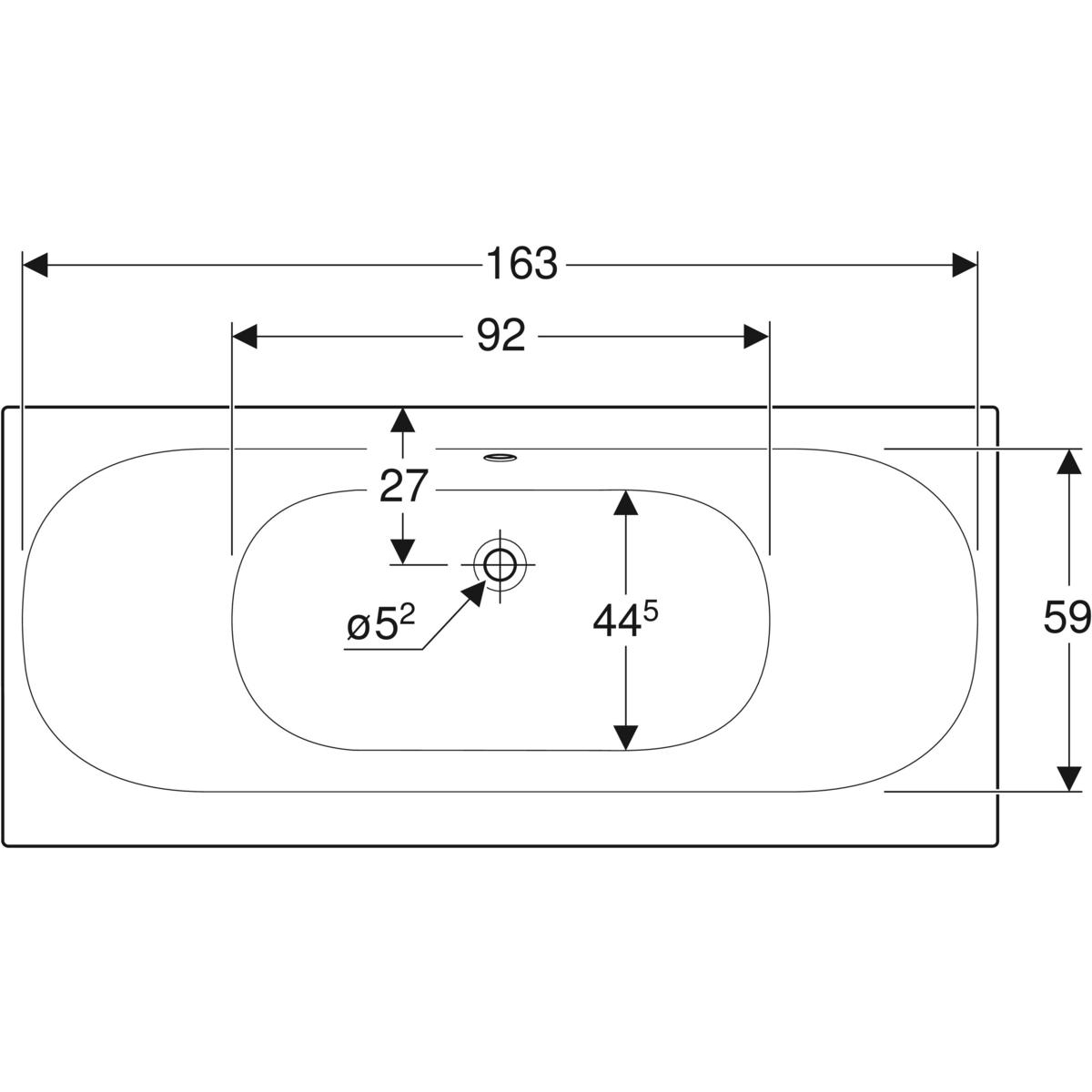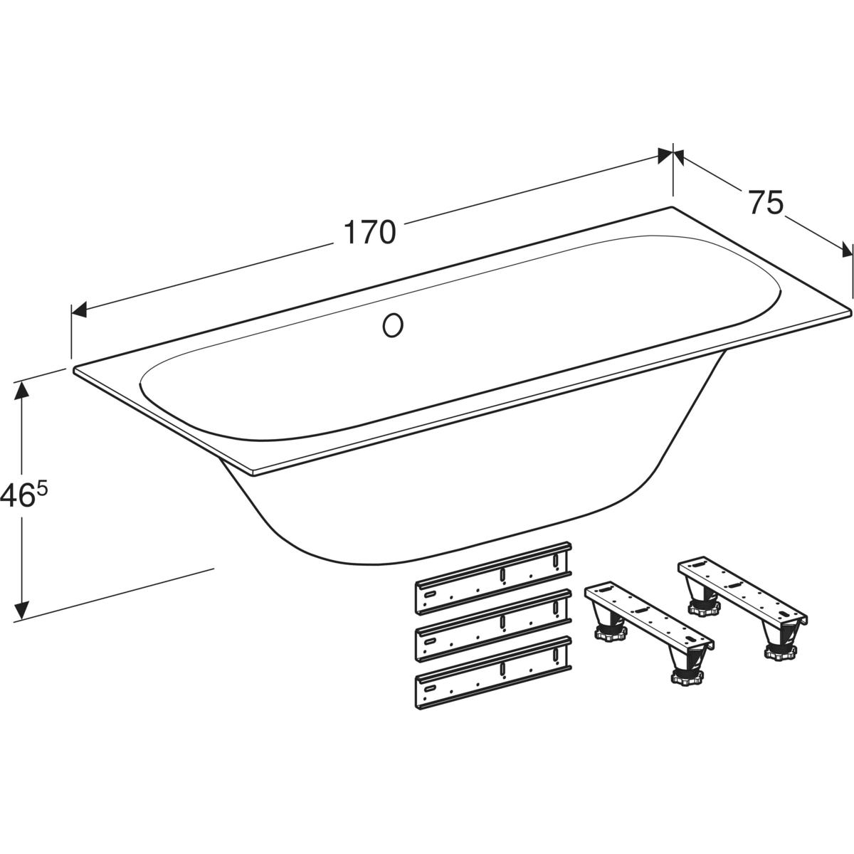 Wanna prostokątna Geberit Soana, slim rim, Duo, z nogami: 170x75cm, Całkowita pojemność=179l