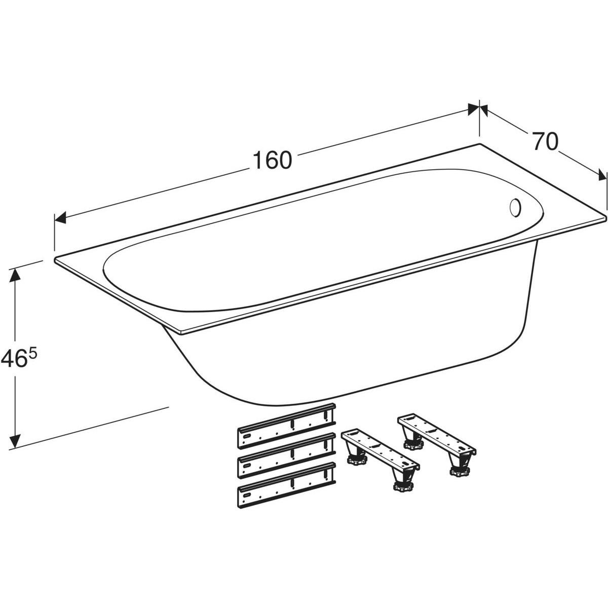 Wanna prostokątna Geberit Soana, slim rim, z nogami: 160x70cm, Całkowita pojemność=195l