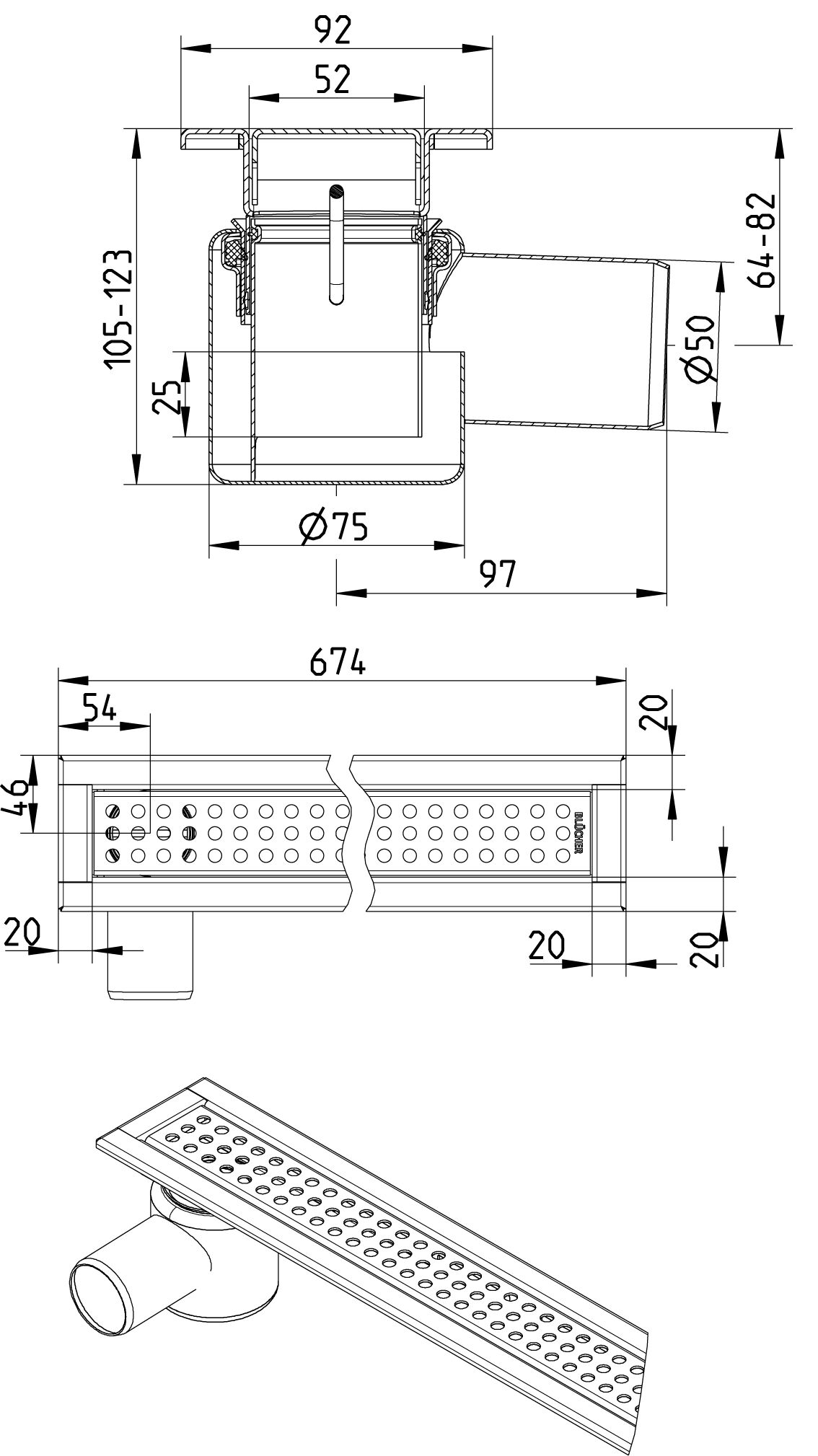 WaterLine Kanał prysznicowy 700, zestaw z syfonem i rusztem