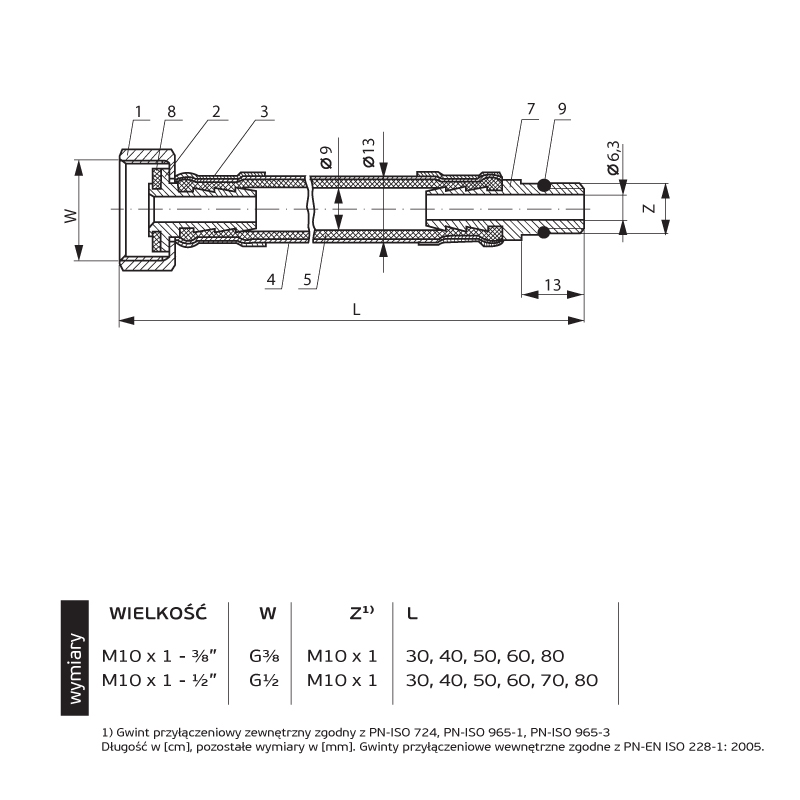 Wąż przyłączeniowy elastyczny PERFEXIM PHA-9145/C DN 8, GW x GZ, 1/2'' x M10, długość 350 mm