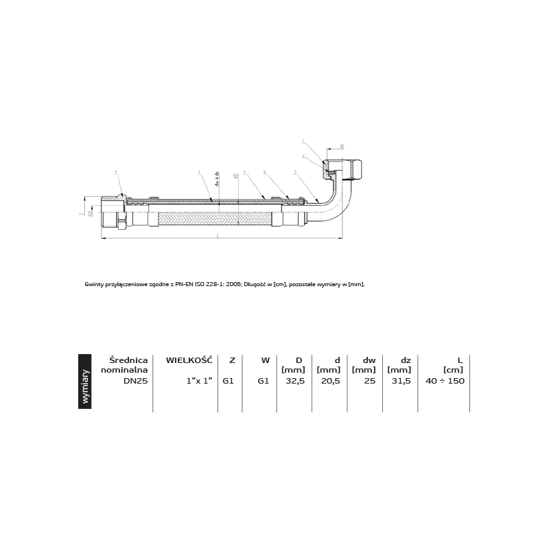 Wąż przyłączeniowy elastyczny PERFEXIM PHA-9156 DN 25, GW x GZ, 1'' x 1'', długość 900 mm