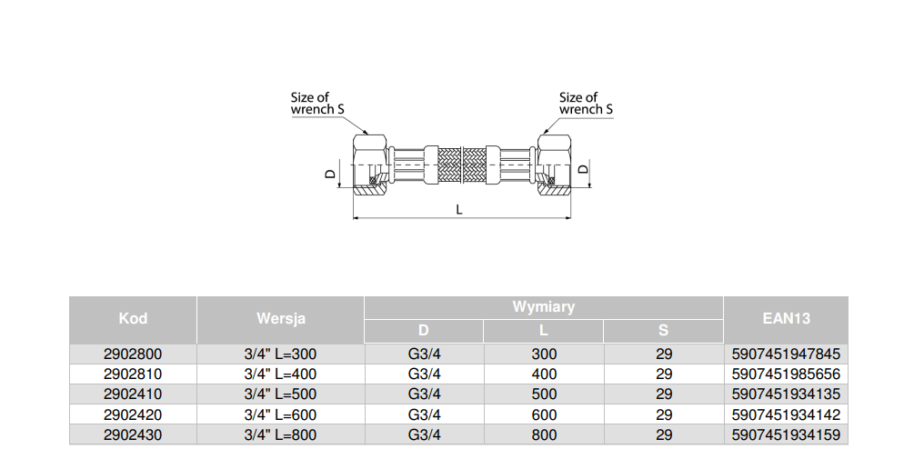 Wąż przyłączeniowy elastyczny VALVEX Viper Plus z oplotem (stal nierdzewna), GW x GW, 3/4'' x 3/4'', długość 300 mm