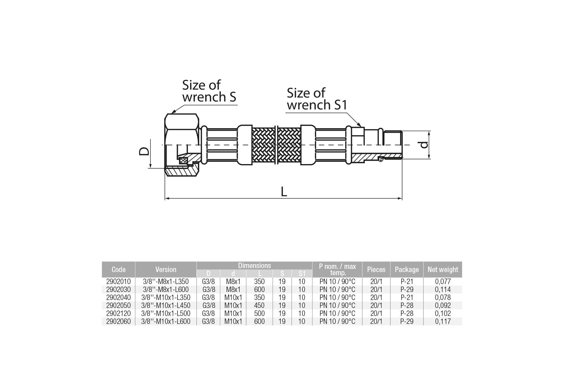 Wąż przyłączeniowy elastyczny VALVEX Viper Plus z oplotem (stal nierdzewna), GW x GZ, 1/2'' x M8x1, długość 500 mm, z uszczelką