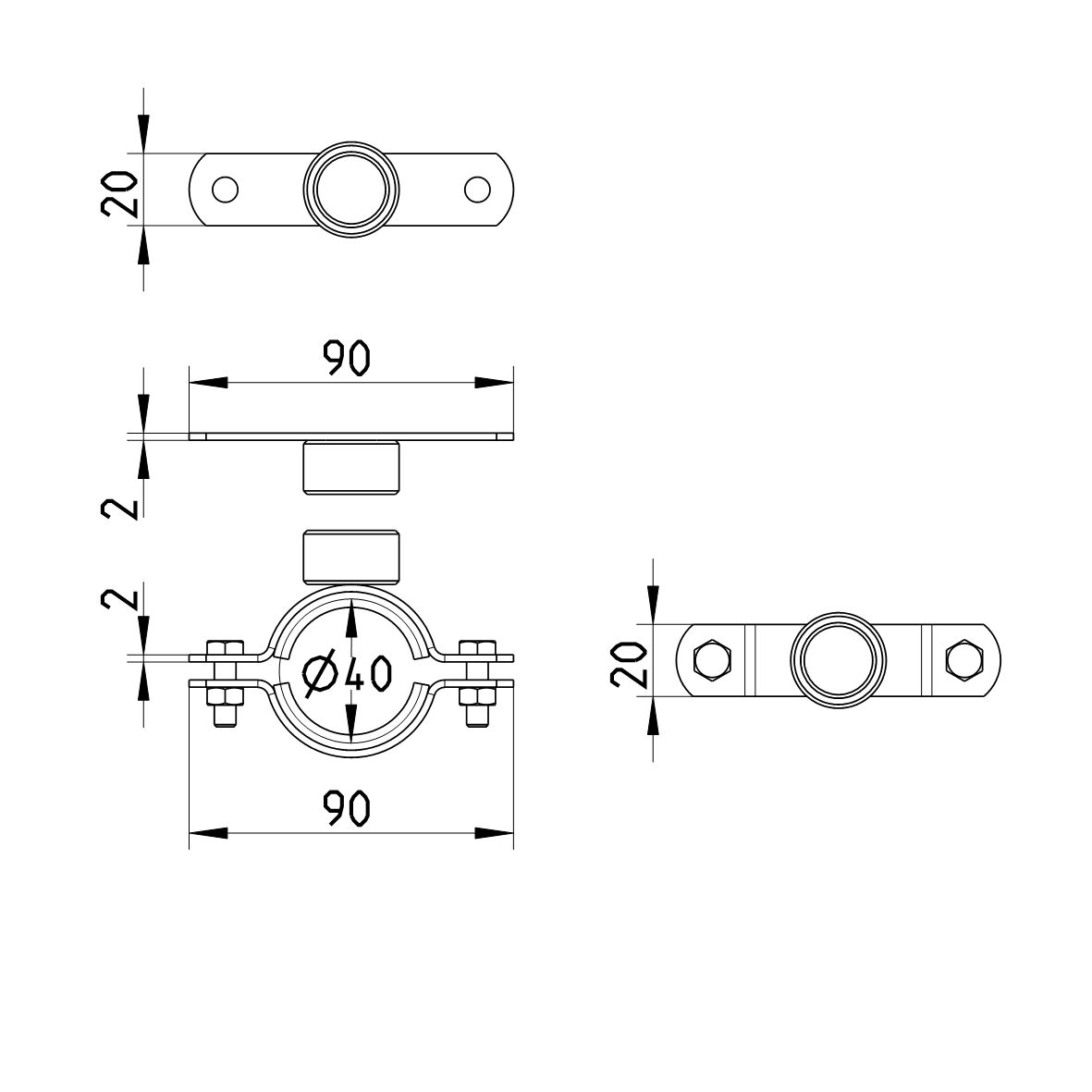 Wieszak do rur dwu-częściowy DN =40 mm, z mocowaniem do ściany