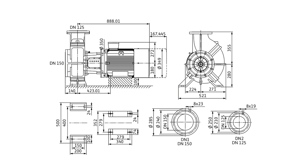*Przyłącze gwintowane po stronie tłocznej: DN 125