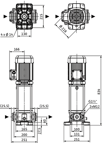 Pompa o kompaktowej konstrukcji z wałem przelotowym silnik-pompa i niezależnym od kierunku obrotów uszczelnieniem mechanicznym. Komory stopni, wirniki i kierownice przepływowe ze stali nierdzewnej. Płyta podstawy pompy z żeliwa z powłoką kataforetyczną z połączeniem kołnierzowym owalnym.